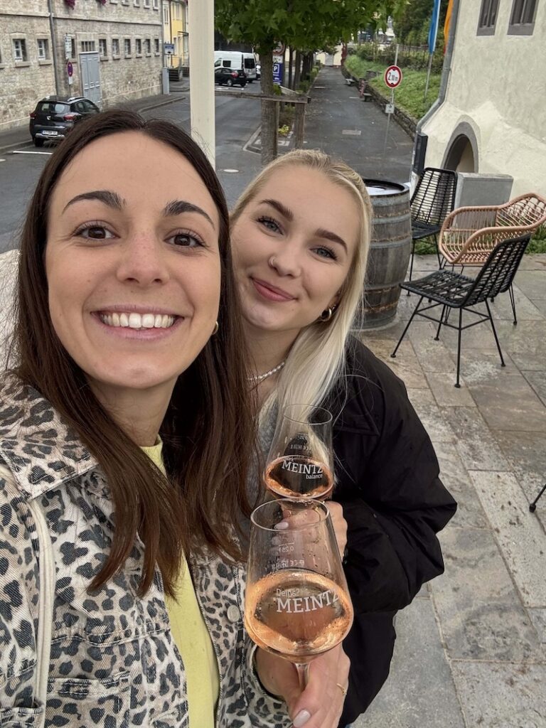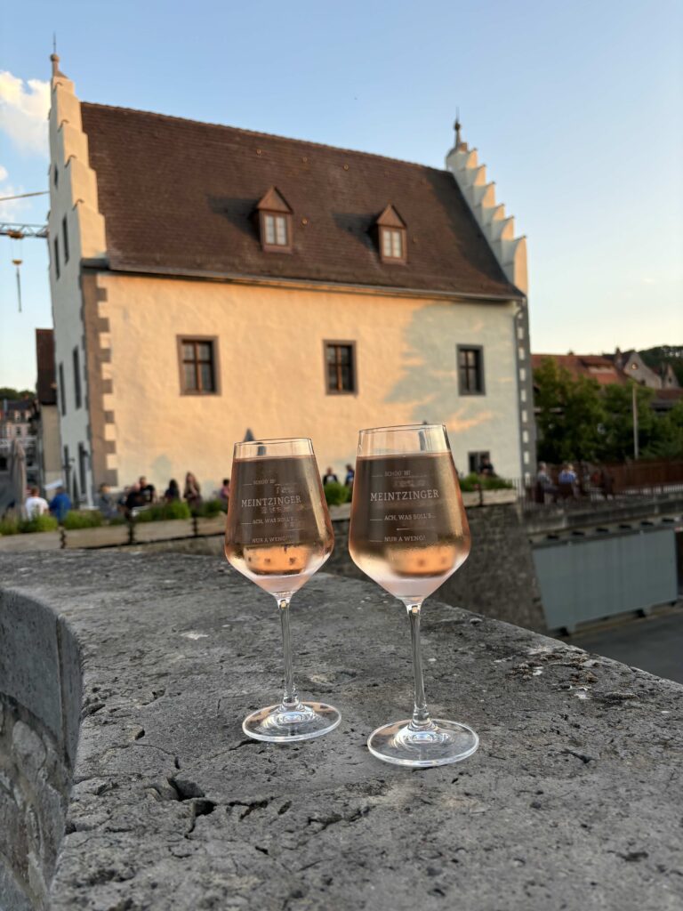 Nach dem Bummel durch die Stadt war der perfekte Zeitpunkt für eine Pause: ein Brückenschoppen bei der Outdoor-Weinbar Meintz. Mit einem Glas Wein in der Hand und dem Blick auf die Alte Mainbrücke fühlt man sich wie im richtigen Urlaub – nur eben ganz nah an zu Hause. Das ist der perfekte Übergang vom Nachmittag zum Abend.