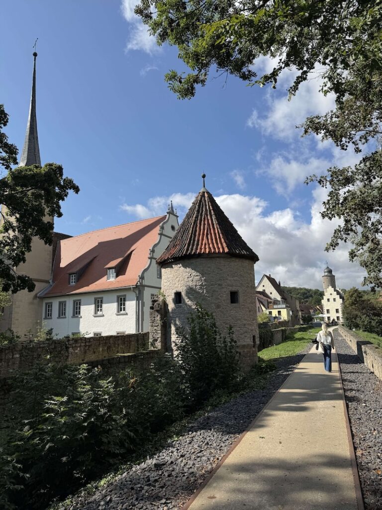 Mit einer Kugel Pistazien-Eis als Stärkung in der Hand haben wir uns in die verwinkelten Gassen der Altstadt begeben. Es ist wirklich beeindruckend, wie gut die mittelalterliche Stadtmauer und die vielen Fachwerkhäuser erhalten sind. Wir sind entlang der alten Eisenbahn-Linien vorbei an den gut erhaltenen Türmen spaziert und haben uns einfach treiben lassen. Überall gibt es etwas zu entdecken: Kleine Läden, liebevoll gestaltete Schaufenster, die zum Window Shopping einladen und historische Details an jeder Ecke. Das ist das Besondere an Ochsenfurt: Es ist nicht überlaufen, sondern hat eine ganz authentische und gemütliche Atmosphäre. Unsere Empfehlungen: Die Kräuterstube, die Buchhandlung am Turm, der Weltladen und das MainKidz.
