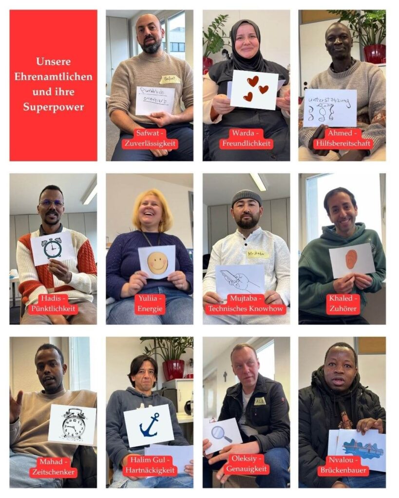 Unsere Integrationsarbeit versteht sich so, dass sie Menschen an unterschiedlichen Stationen ihres Integrationsweges abholt: bei der ersten Orientierung, beim Spracherwerb, beim Zurechtfinden im Alltag und im sozialen Umfeld bis hin zur Übernahme eines eigenen, verantwortungsvollen Ehrenamts. Mit „Auf Augenhöhe“ meinen wir, dass die Hilfsangebote und Unterstützung nicht kritiklos angenommen werden müssen, sondern wir uns immer wieder auch das Feedback von den Geflüchteten holen, wie wir Angebote besser und passender machen können.